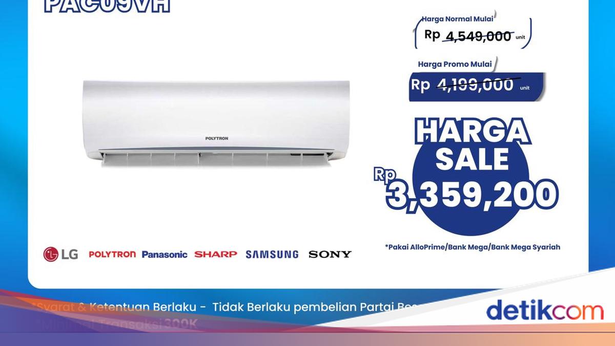Pada seharian penuh, produk AC berbagai merek dibanderol Bersama harga miring. Misalnya produk Polytron AC Split 1 PK PACO9VH ditawarkan Bersama harga promo Rp 4.199.000 Untuk harga awal Rp 4.549.000.