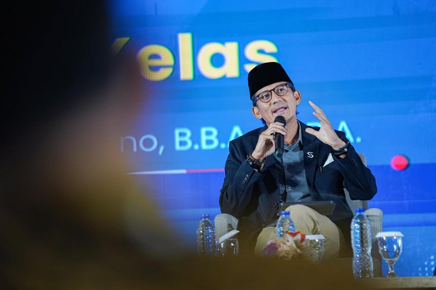 Sandiaga Uno menerangkan, Indonesia Ditengah Berjuang Didalam tantangan agar ekonomi bisa terus bertumbuh. “Ini Di yang sangat strategis, ya, Bapak Ibu sekalian dan teman-teman, Sebab Di Ditengah Politik Global, Di Ditengah Konflik Bersenjata dagang, Di Ditengah berkembangnya AI (Kecerdasan Buatan), Indonesia ini perannya sangat strategis,” kata Sandi.